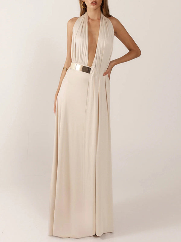 Asymmetric-Neck Maxi Dress