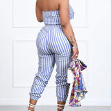 • Strapless Neckline, Zip Front, Elastic Waist, Jogger Leg