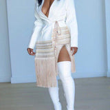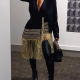 - Plunge Neck, Long Sleeve, Fringe Combo