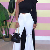- Solid Color, One-Shoulder, High-Low, Puff-Sleeve