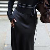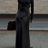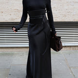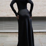 - Asymmetrical Neckline, Long Sleeves, Maxi Length