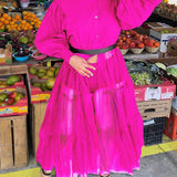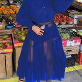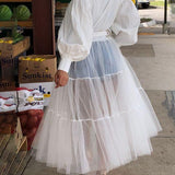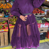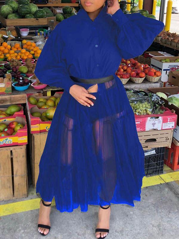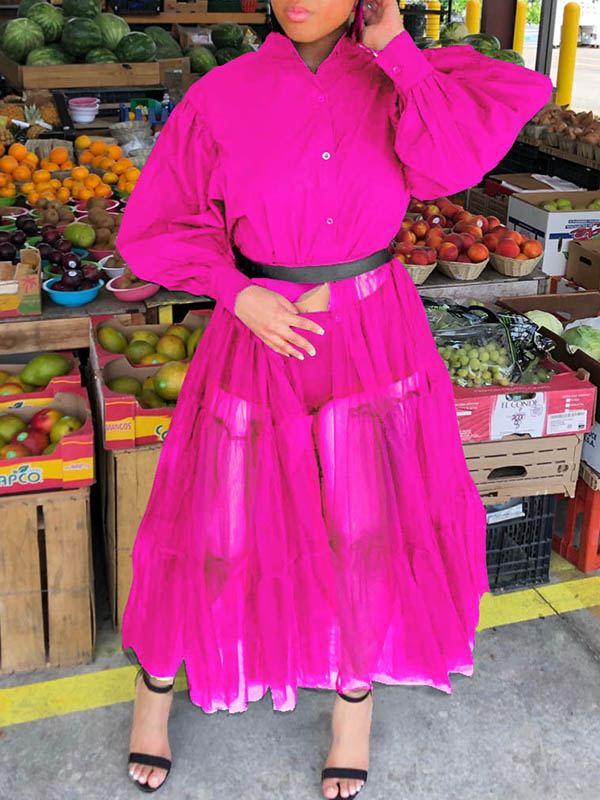 - Puff Sleeve, Button Front, Sheer Combo Hem
