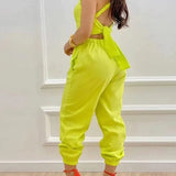 - Sleeveless, Tied Back, Jogger Leg