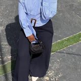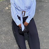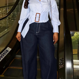 • Spread Collar, Long Sleeves, Button Front, Belted Waist
