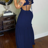 - Deep V Neck, Sleeveless, Lace-Up Back