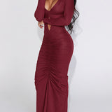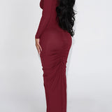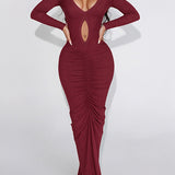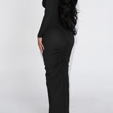 - V Neck, Cutout Front, Long Sleeves, Maxi Length