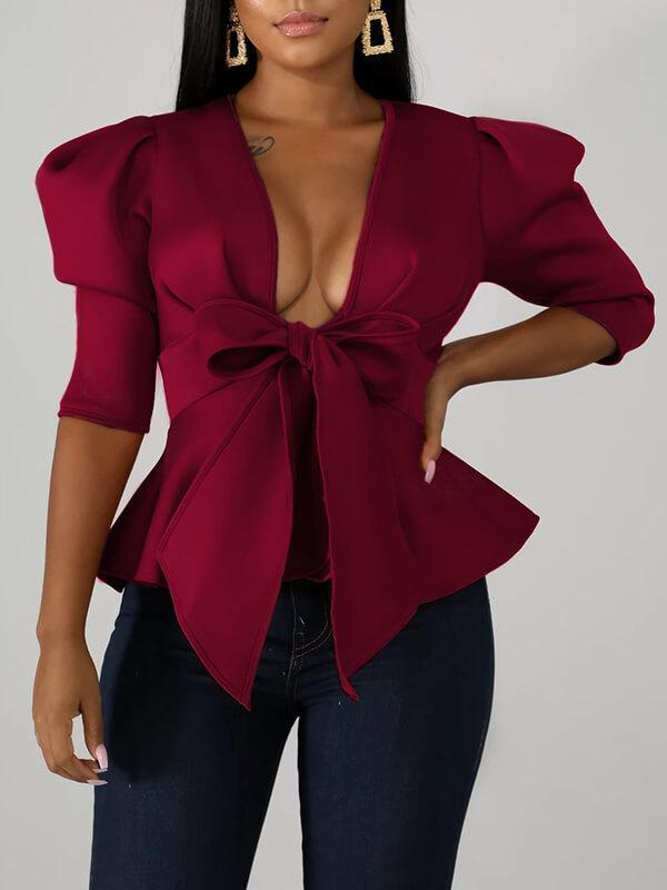 Sheer-Combo Puff-Sleeve Jacket - clearance