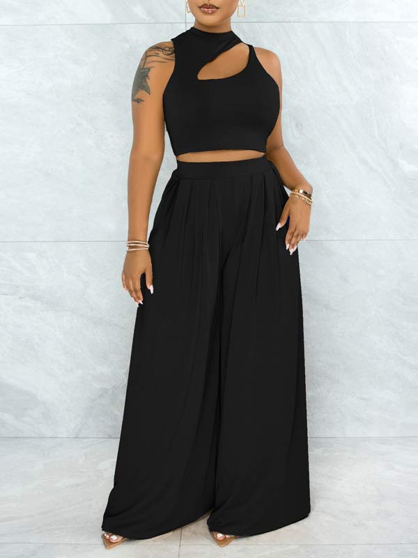 Zip-Front Hoodie & Wide-Leg Cutout Pants Set