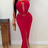 Strapless Cutout Slit Dress
