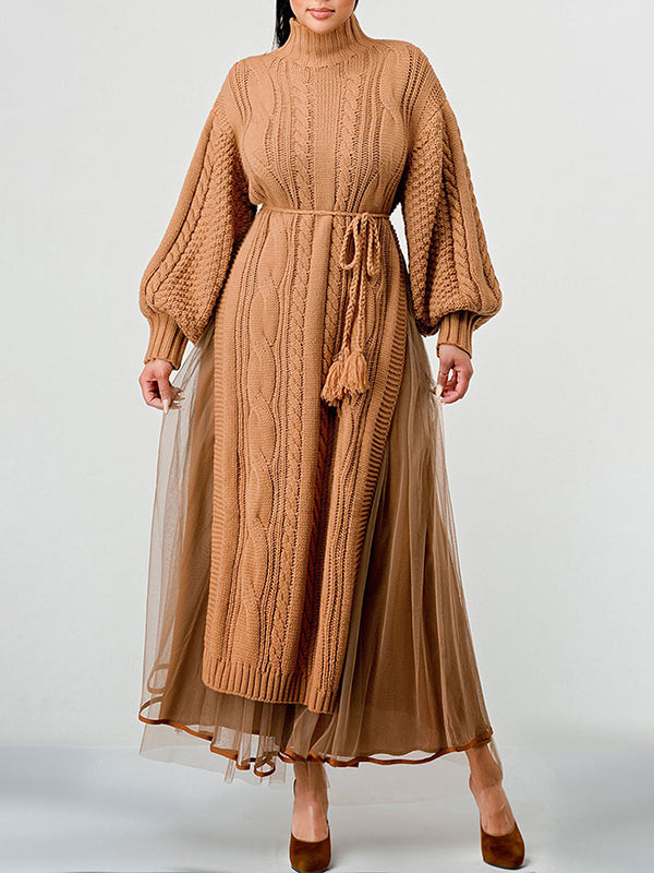 Asymmetric Turtleneck Knit Cape