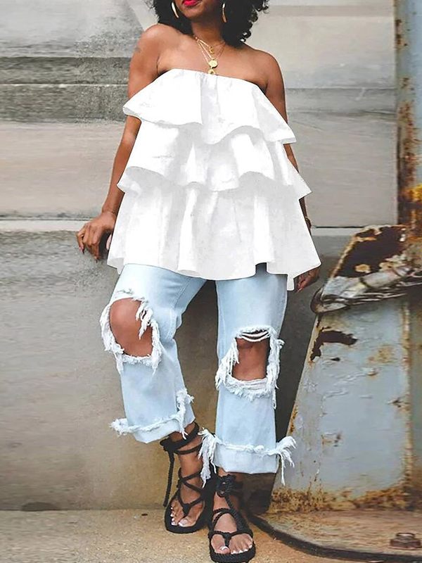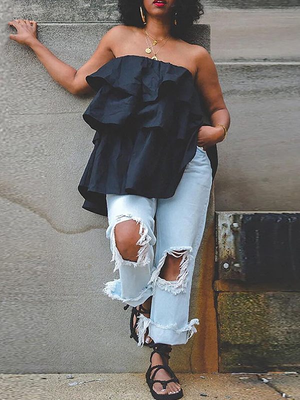 Off-Shoulder Ruffle Tunic Top