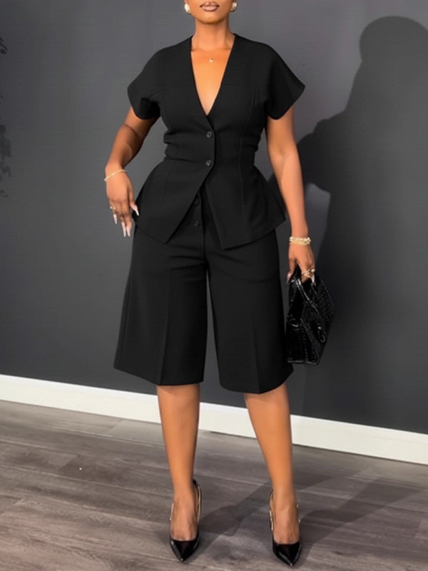 Button-Front Top & Capri Pants Set