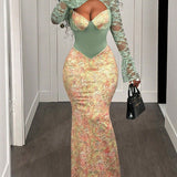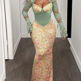 - Cutout Bust, Long Sleeves, Maxi Length