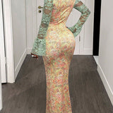 Lace-Combo Cutout Maxi Dress