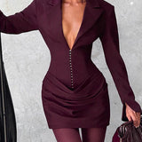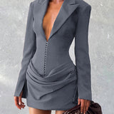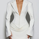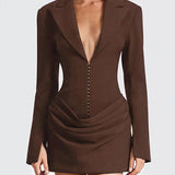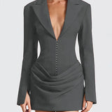 V-Neck Ruched Blazer Dress