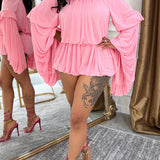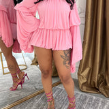Bell-Sleeve Ruched Romper