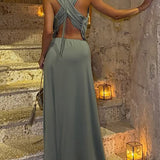 • Cowl Neck, Sleeveless, Side Slit, Maxi Length