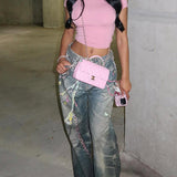 Denim Print Pants