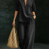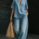 Denim V-Neck Top & Pants Set