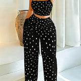 Dot Halter Top & Fringe Pants Set