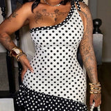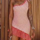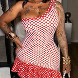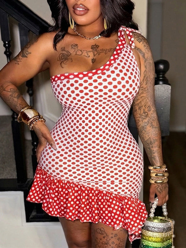 Dot One-Shoulder Ruffle Dress