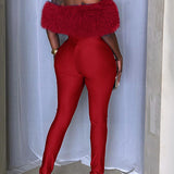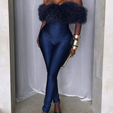 Faux-Fur Combo Off-Shoulder Jumpsuit