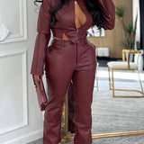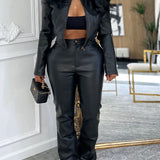 Faux-Leather Jacket & Pants Set