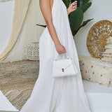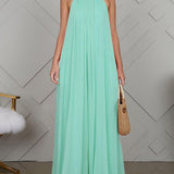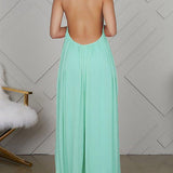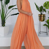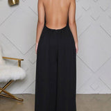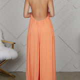 • Halter Neckline, Sleeveless, Backless, Wide Legs, Full Length