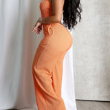 - Halter Neckline, Sleeveless, Wide Leg