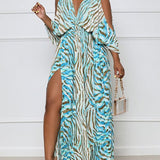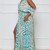Printed Cold-Shoulder Slit Dress