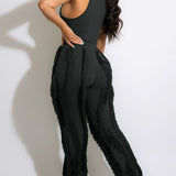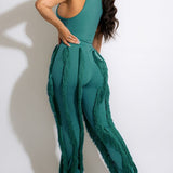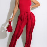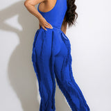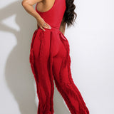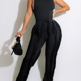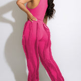 - Sleeveless, Drawstring Elastic Waist, Fringe Combo