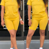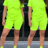 • Solid Color, Round Neck, Short Sleeve, Biker Shorts