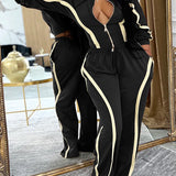 - Spread Collar, Zip Front, Drawstring, Wide Leg