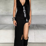 V-Neck Sleeveless Slit Dress